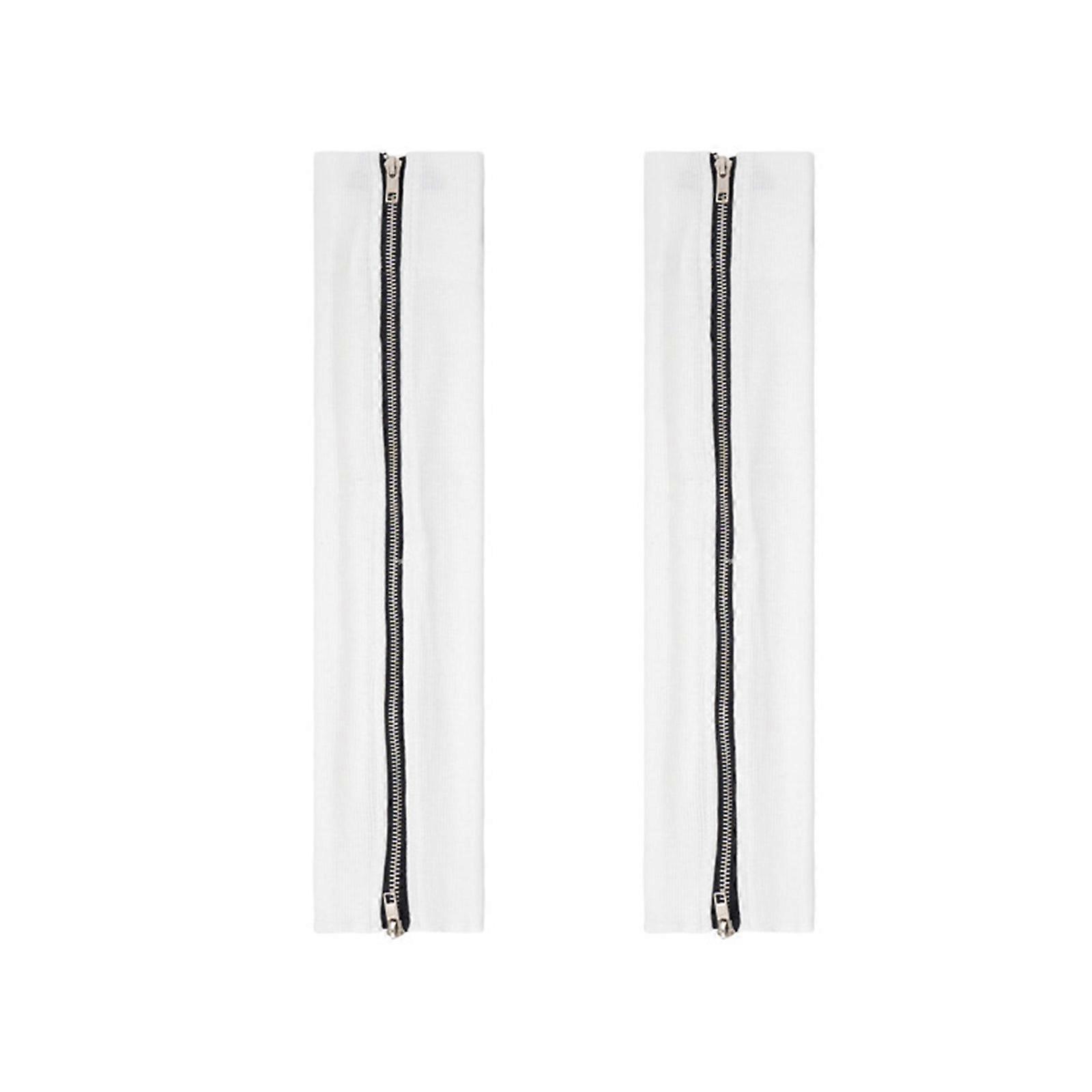 Punk Double Zippers Long Leg Socks Ribbed Leg Warmers Harajuku Over Calf Leg Gaiters Boot Covers for Women Streetwear White