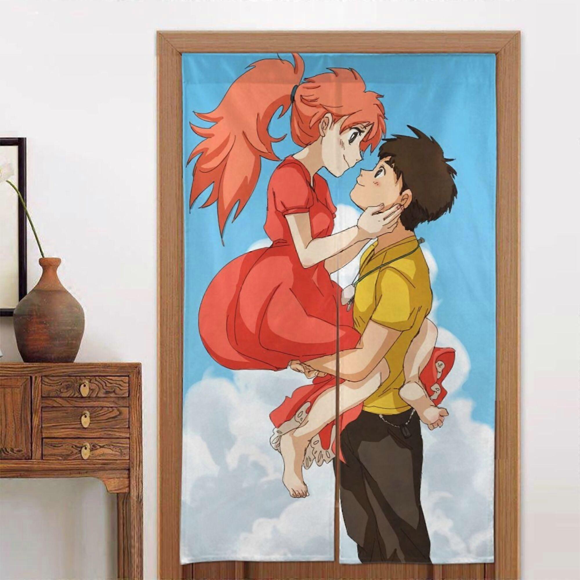 Ponyo Door Curtain for Doorway, Pattern Print Blackout Privacy Window Curtain, Room Divider Curtain Tapestry Home Decor, 34" W X 56" L