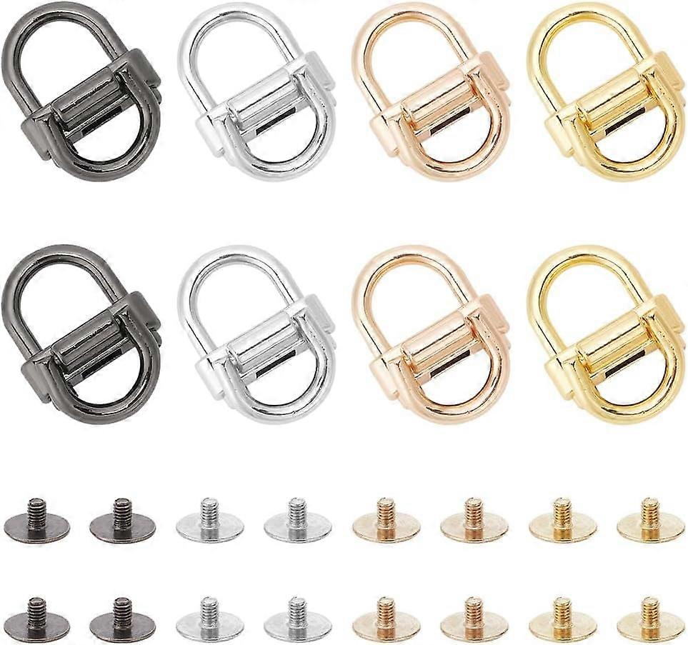 8 Sets Alloy Handbag Side Clip Buckles 4 Colors, Purse Suspension Clasp with Double D-ring Lanyard, Chain Connector & Screws for DIY Bag Making