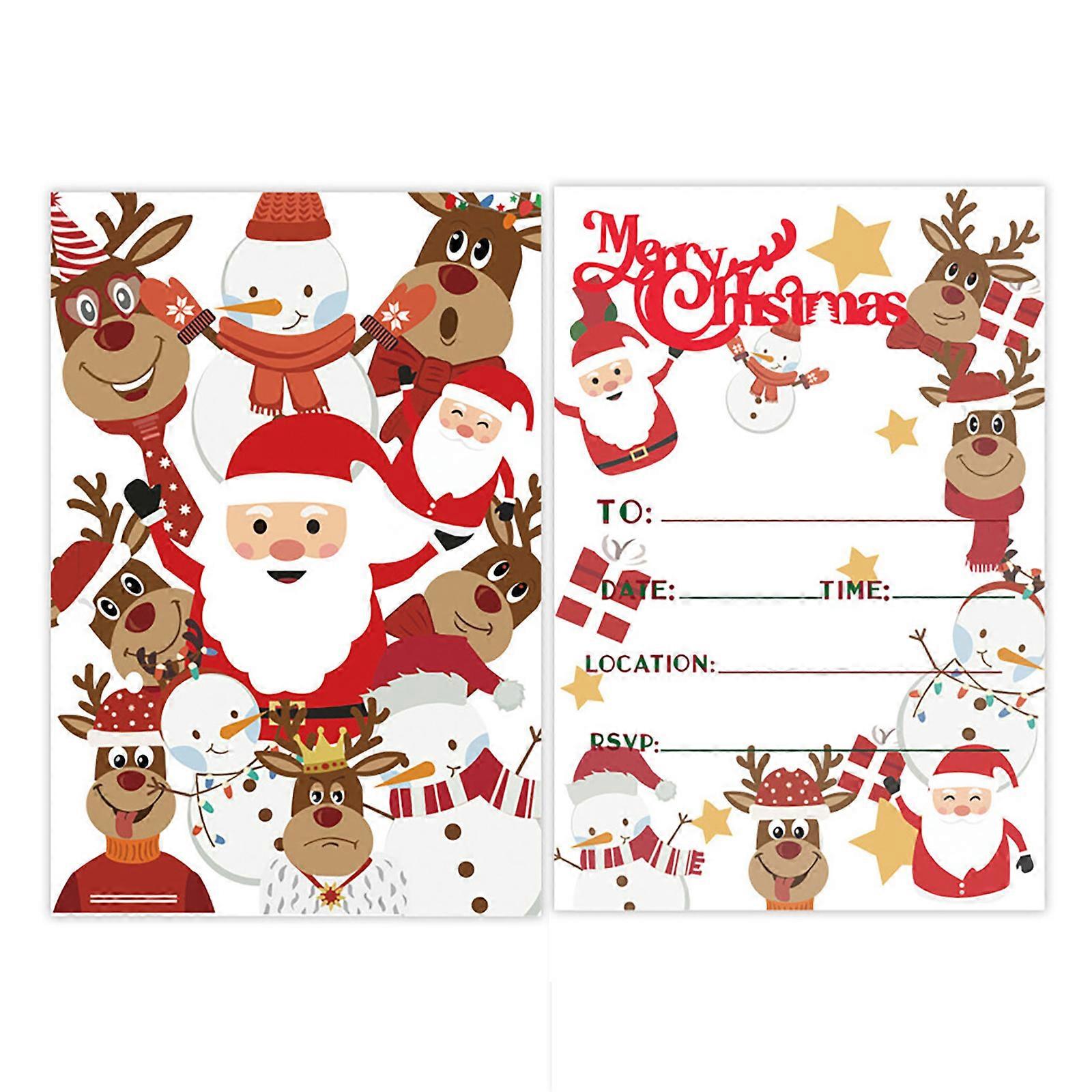 10Pcs Christmas Invitation Card With Christmas Deer Snowman Santa Present Case Pattern Christmas Invitation Postcards Multicolor