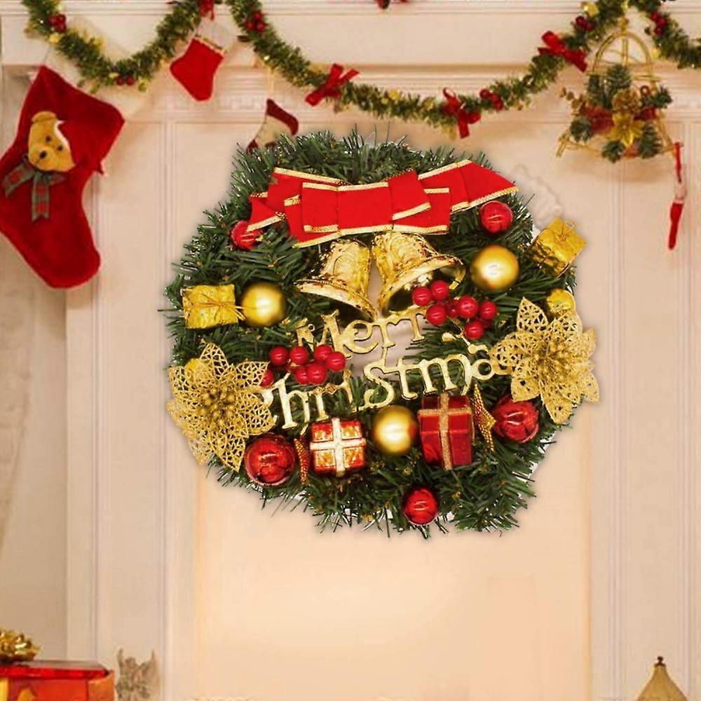 Christmas Wreath, Outdoor Christmas Wreath for Front Door, Christmas Balls Pre-Lit Xmas Wreath with for Holiday Christmas Party Decorations