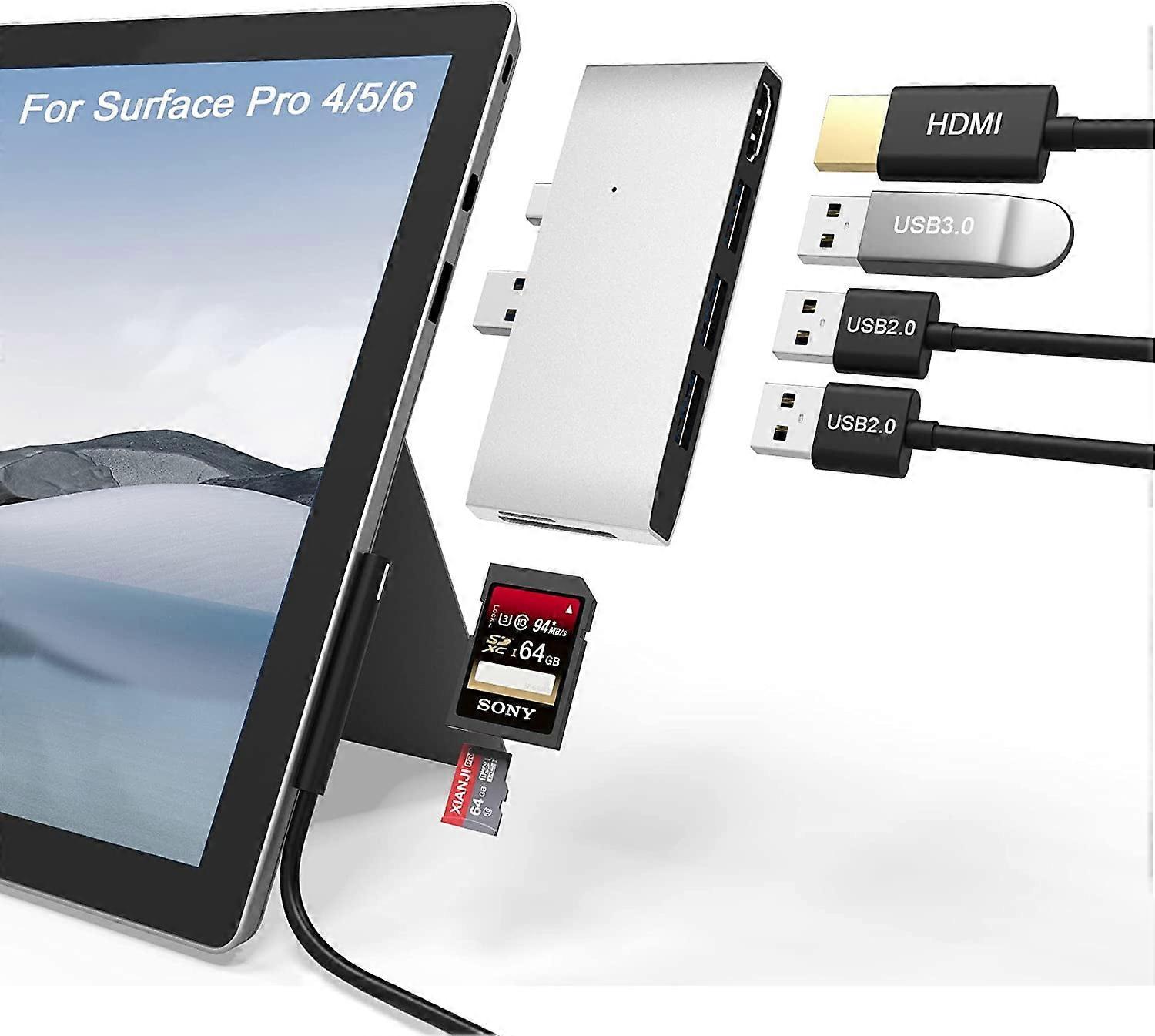 Surface Pro 4/5/6 USB Hub Docking Station, Surface Pro Hub Adapter with 1xUSB3.0 + 2X USB2.0 Ports, SD + TF Card Slot,
