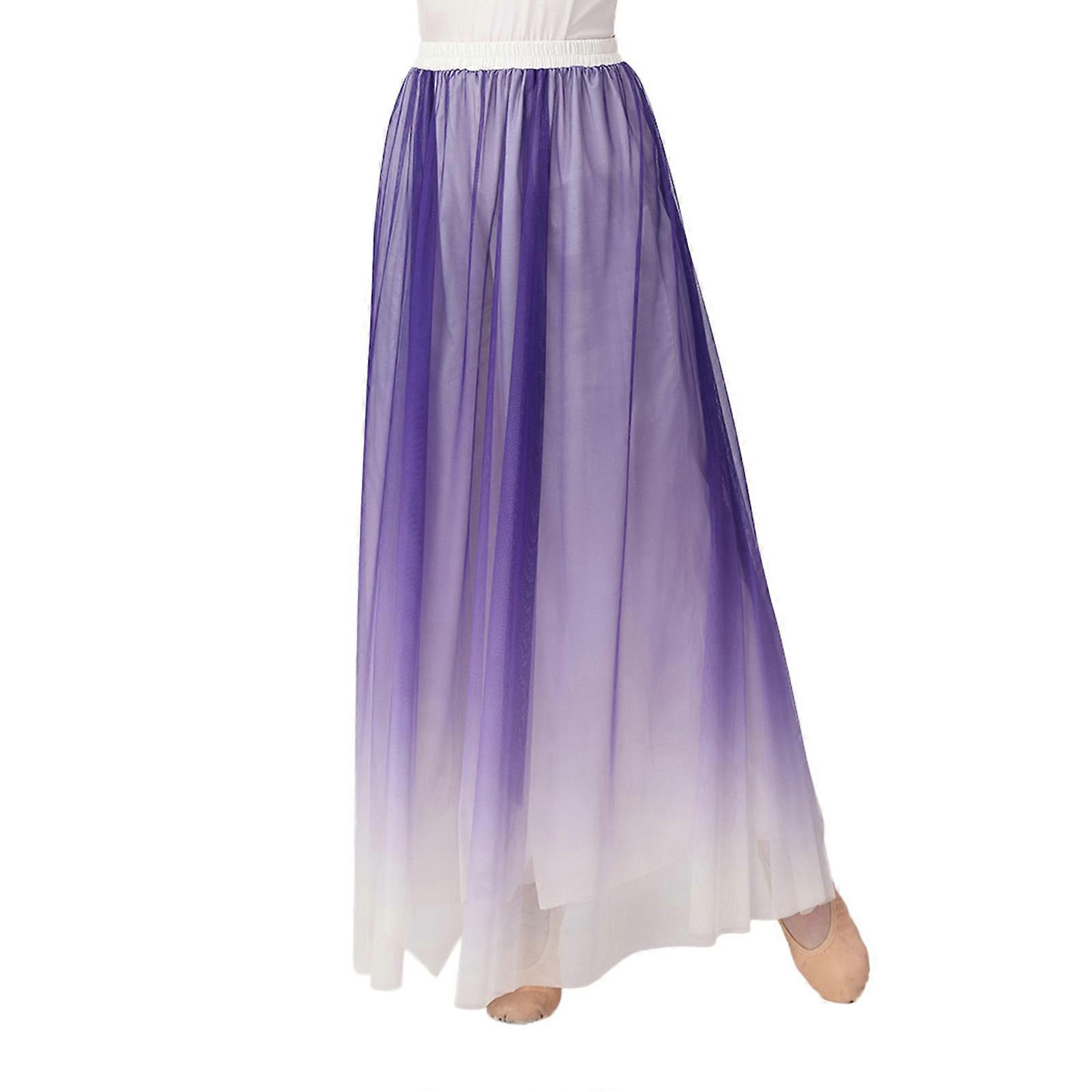 Women's Dance Costumes Loose Gradient Double Layered Palazzo Pants for Dance Training Exercise Gradient purple XL