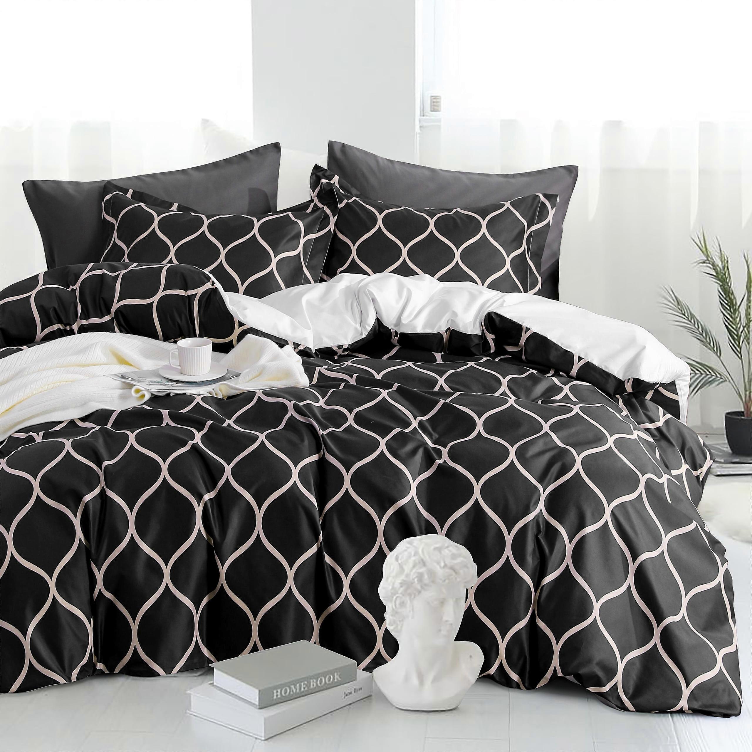 Flxxie 100% Brushed Microfiber Duvet Cover Set, Super Soft Curve Comforter Cover Set with Ties and 2 Pillow Shams, Black, Queen, 3 Pieces