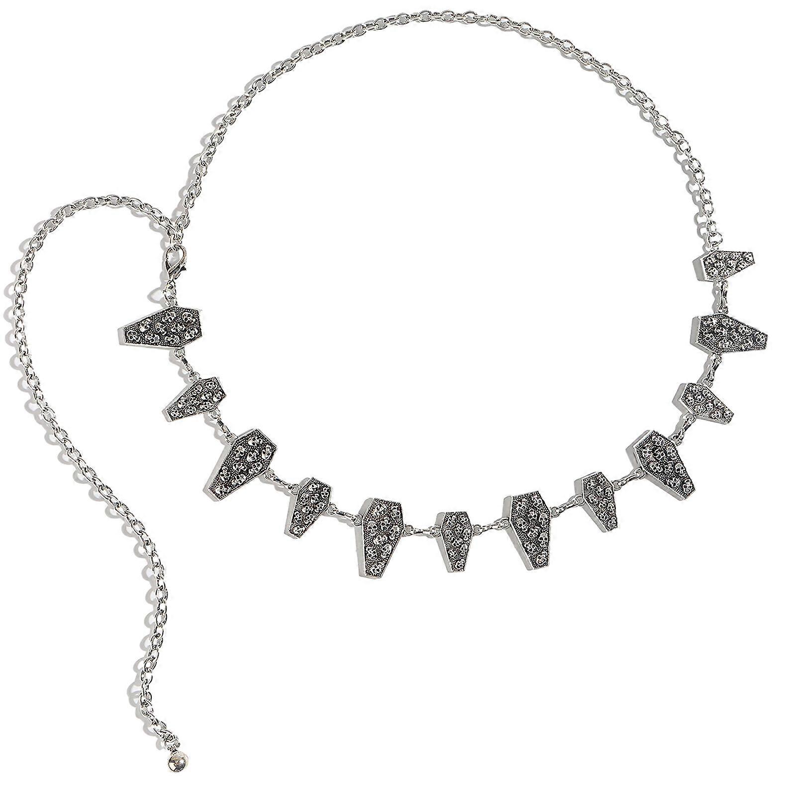 Elegant Skull Plan Silver Metal Waist Chain For Women Modifiable Belt Jewelry Exemplary For Dresses Jeans Concerts Silver