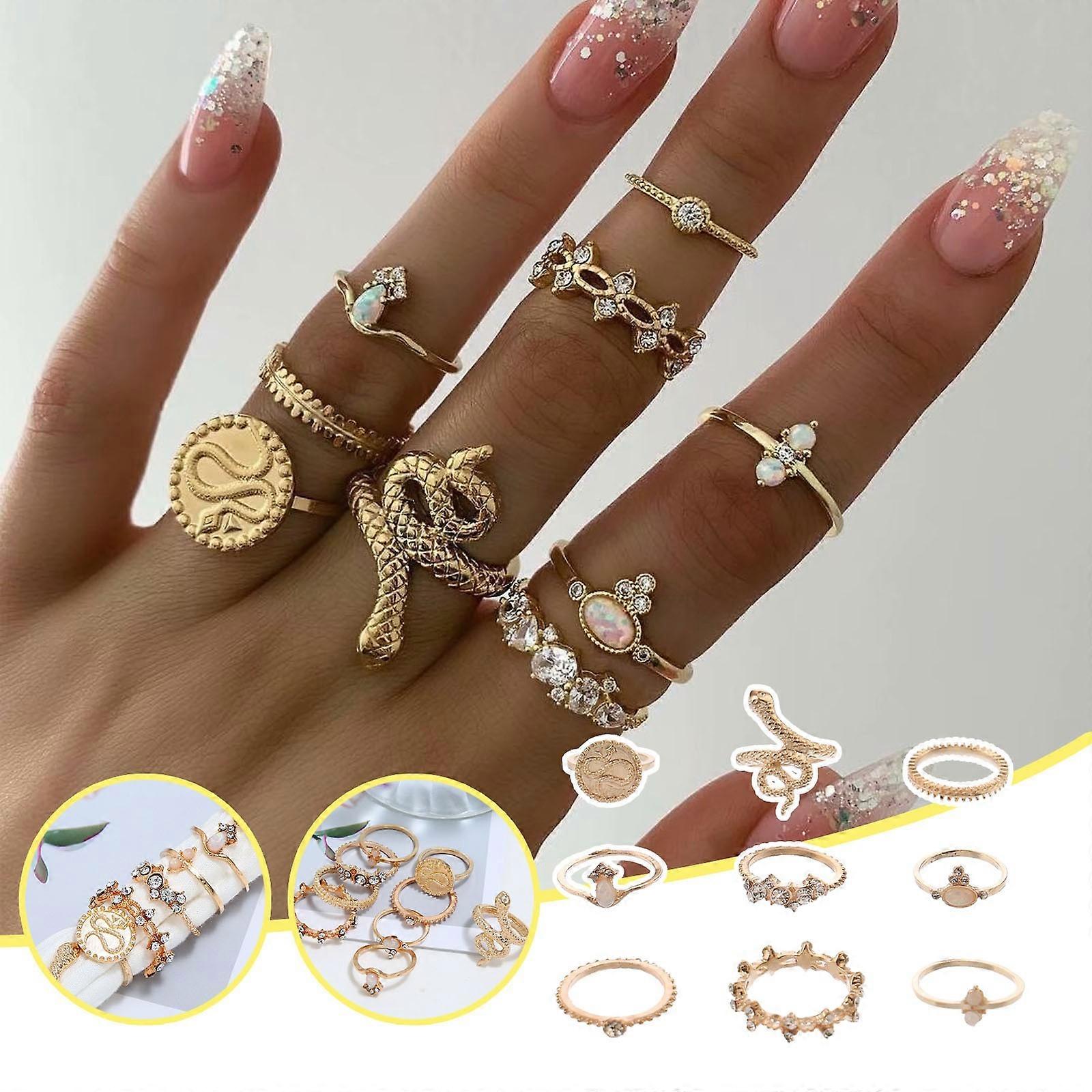 Up to 50% off Women Rings Set of 9Pieces Retro Printed Diamond Coin Anti-opal Snake Joint Ring Set for Valentine's Day