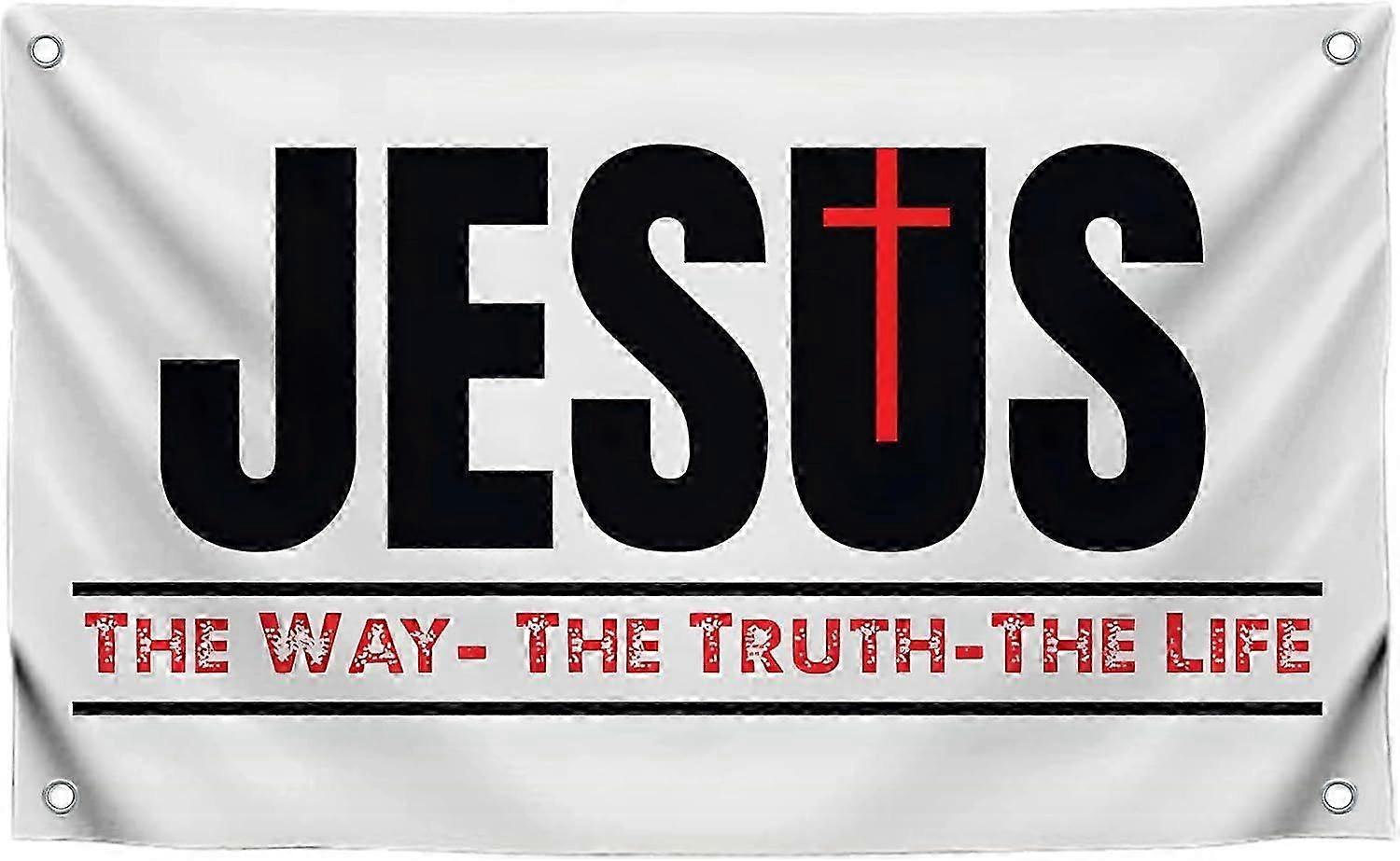 Ft Jesus The Way Truth Life Flag - Decorations Patriotic God Flag -Jesus Bedroom Wall Decoration - Christian Jesus Flags for Outside Mode A-4163