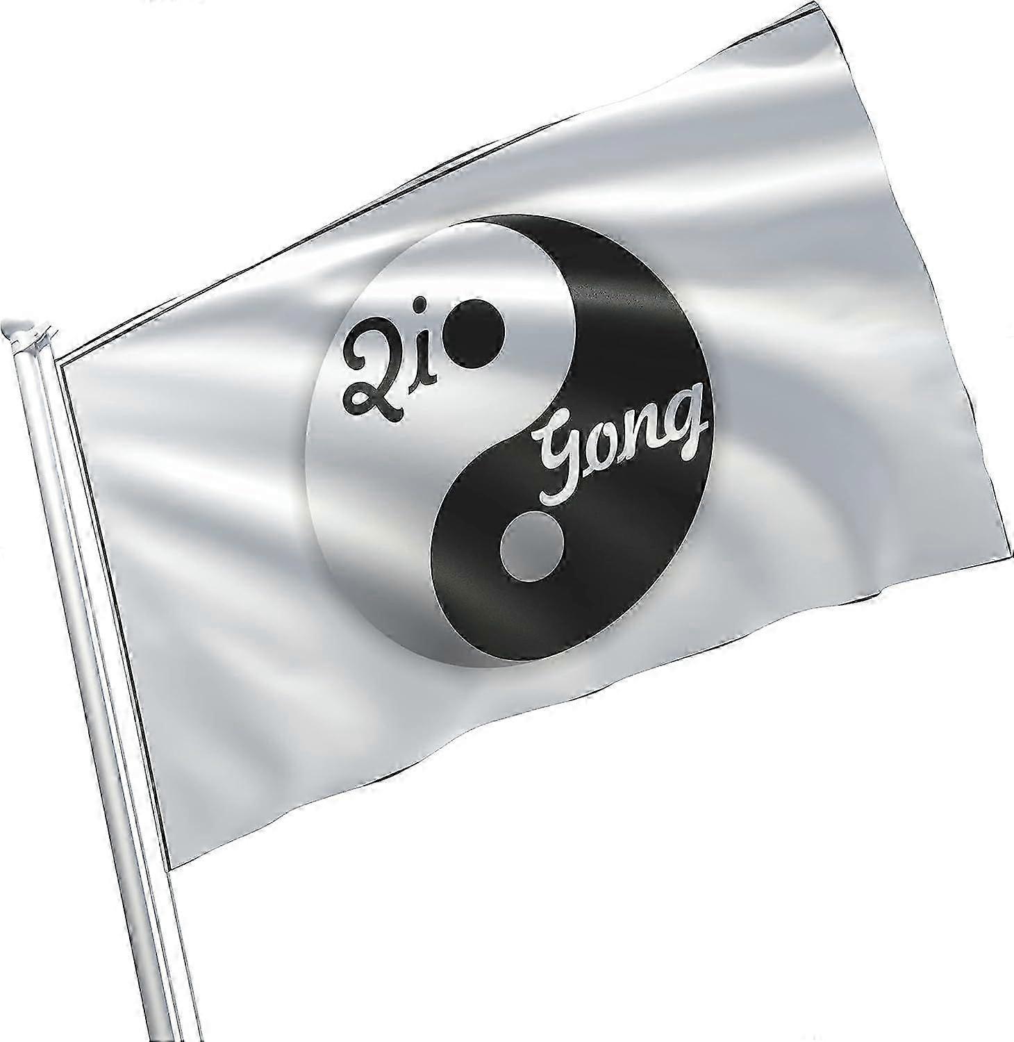 Qigong Yin Yang Black Banner Flag White Meditation Confucianism Daosism Buddhism Flag (Qigong 2) Mode A-1587