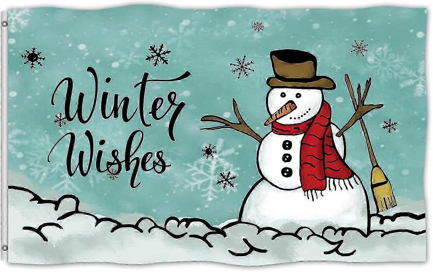 Tititex Christmas Winter Cute Snowman Teal Garden Flag , Winter Wishes Snowflake Indoor Outdoor Flag Mode A-2882