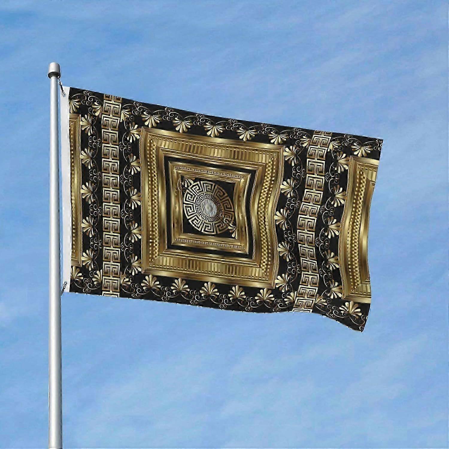 Gold Modern Greek Key Geometric Square Flag Mode A-3210