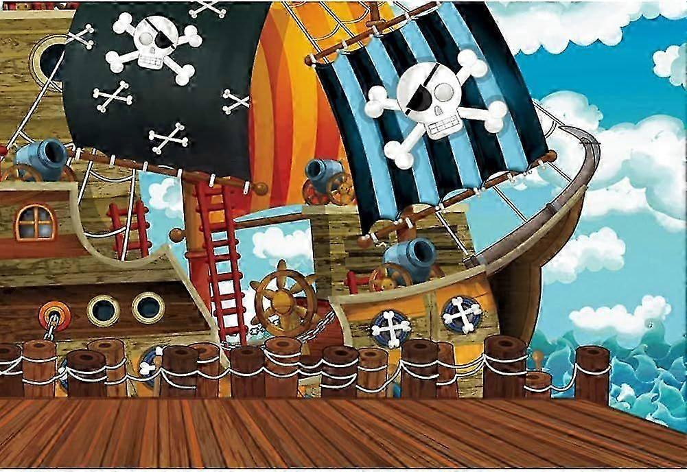 Cartoon Pirate Themed Backdrop for Photography Wooden Rudder Stakes Wood Floor Pirate Flag Ladder Ship Photography Background Halloween Mode A-3337