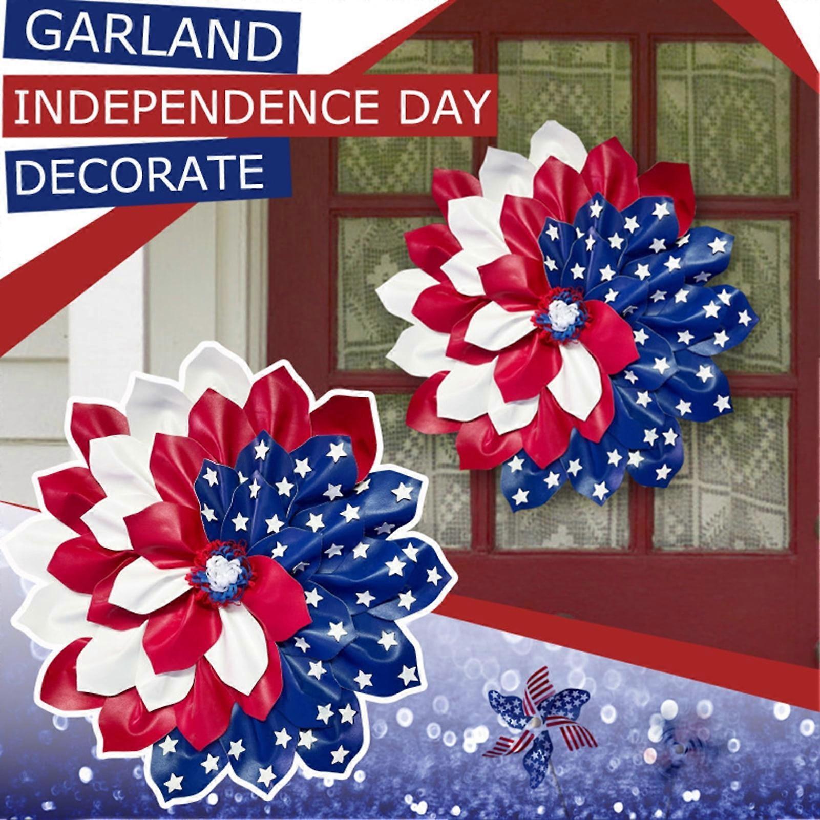 Hesroicy Reusable Patriotic Flower Wreath - Blue, White & Red Cloth Wreath with DIY US Flag Design for 4th of July, Door Decor & Party Supplies