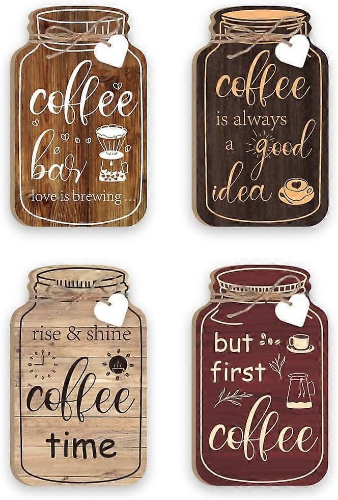 GOMAKERER 4 Pcs Coffee Bar Wall Decor Set - Mason Jar Wooden Signs (3.5x5.9inch), Compatible with Coffee Kitchen Decor, Dining Room Hanging Signs