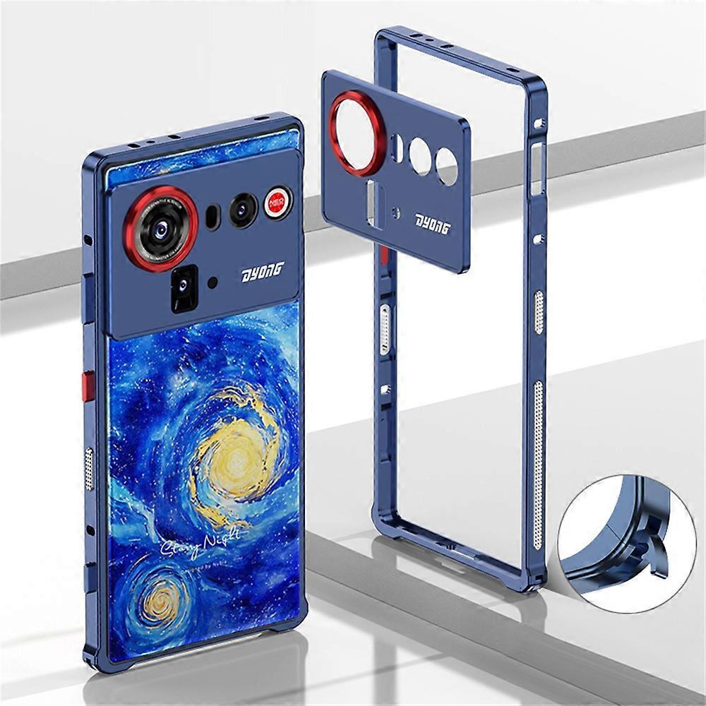 For ZTE nubia Z80 Ultra 5G Bumper Cases Metal Frame Heat Dissipation Cover with Lens Protector - Blu