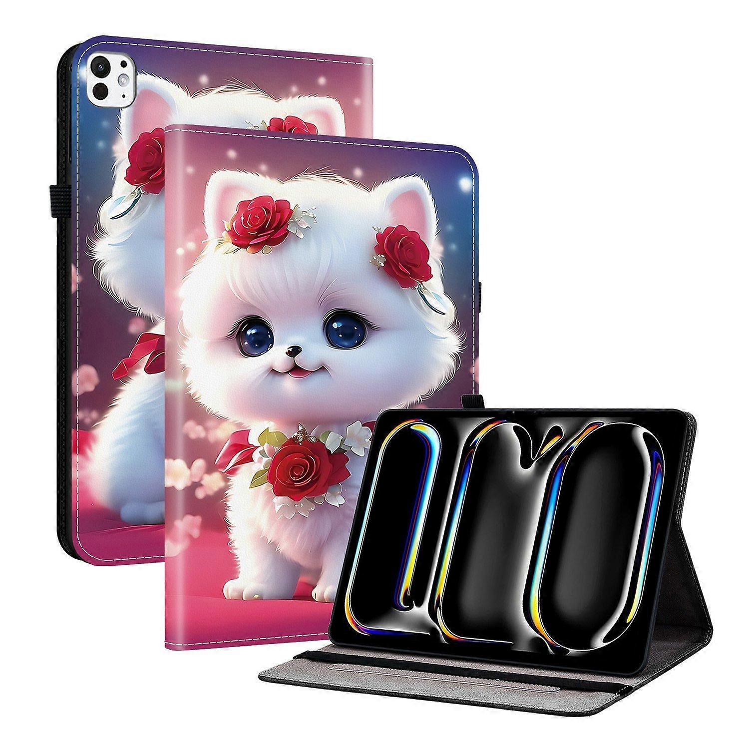 For iPad Pro 11 (2025) (2024) Leather Case Pattern Printed Stand Tablet Cover with Card Slots - Rose