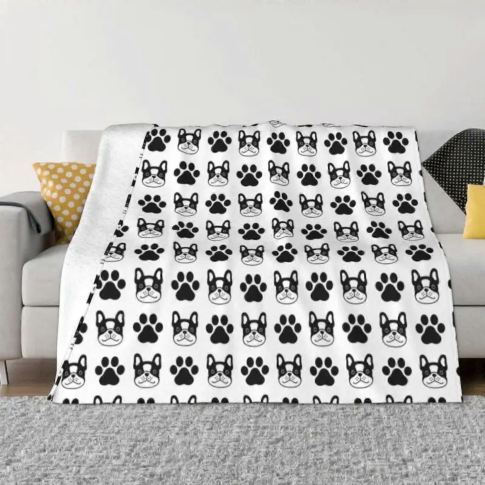 Kawaii French Bulldog Paw Sofa Fleece Throw Blanket Warm Flannel Pet Dog Blankets for Bedroom Travel Sofa Bedspreads