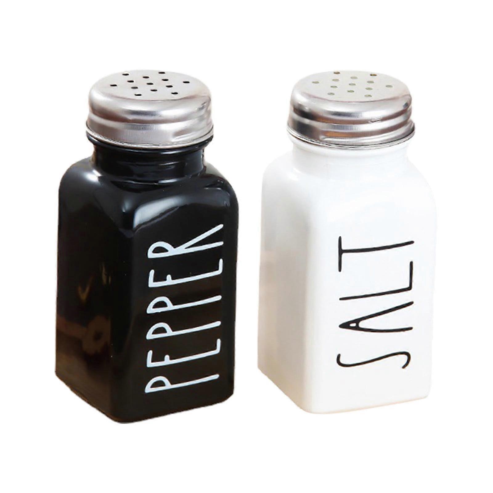 Asija 2 Pack Salt and Pepper Shakers Set, Glass Salt Shaker with Stainless Steel Lid, Modern and Cute Farmhouse Salt and Pepper Set (Black and White)