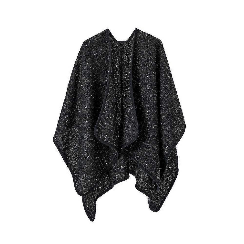 Black Sequin Wool Shawl, Luxury Chanel Style Winter Cape 130CM