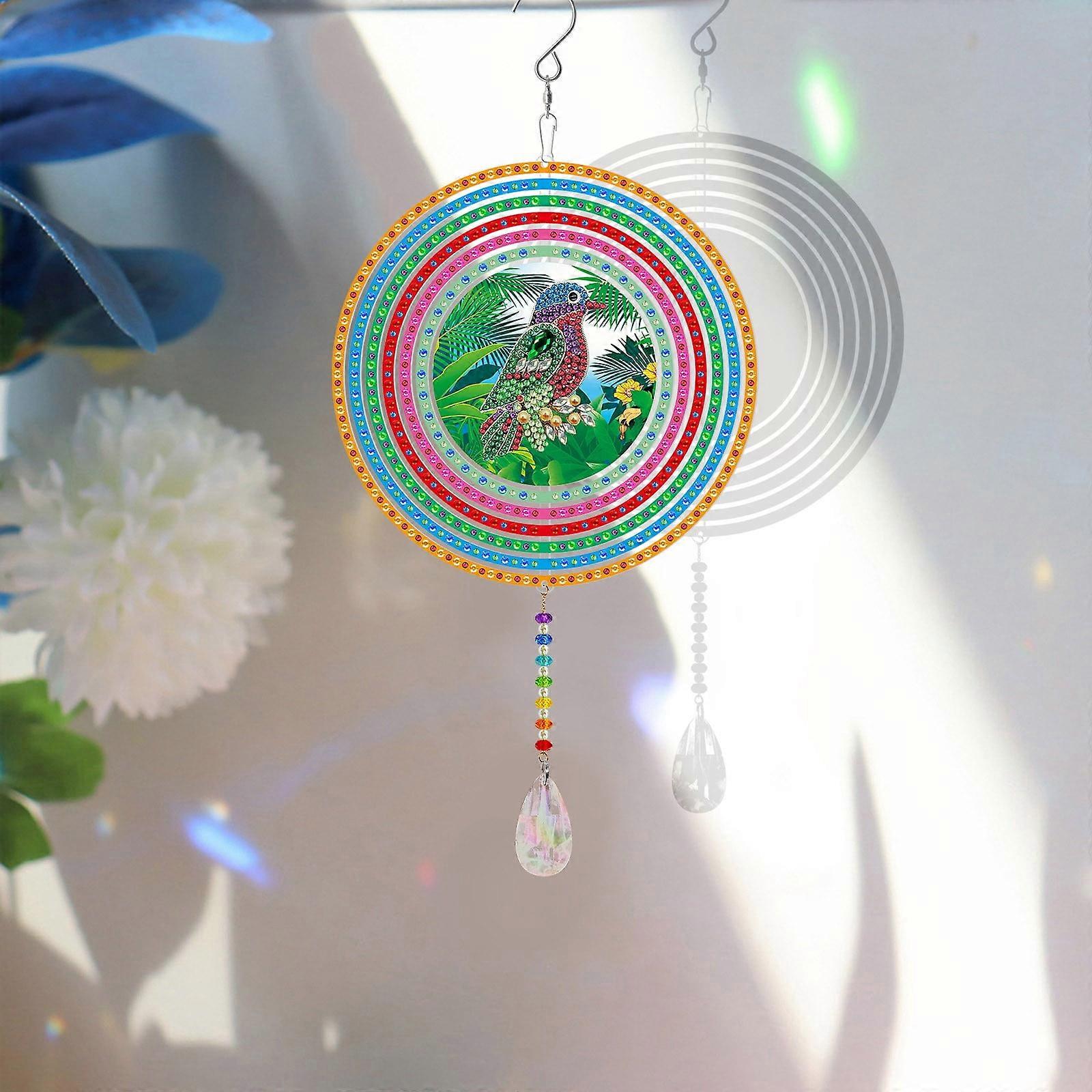 Gnobogi Masonry Painting Hanging Diamond Stickers, Crystal Wind Chime Garden Balcony Decorative Wall Art for Yard, Outdoor Home