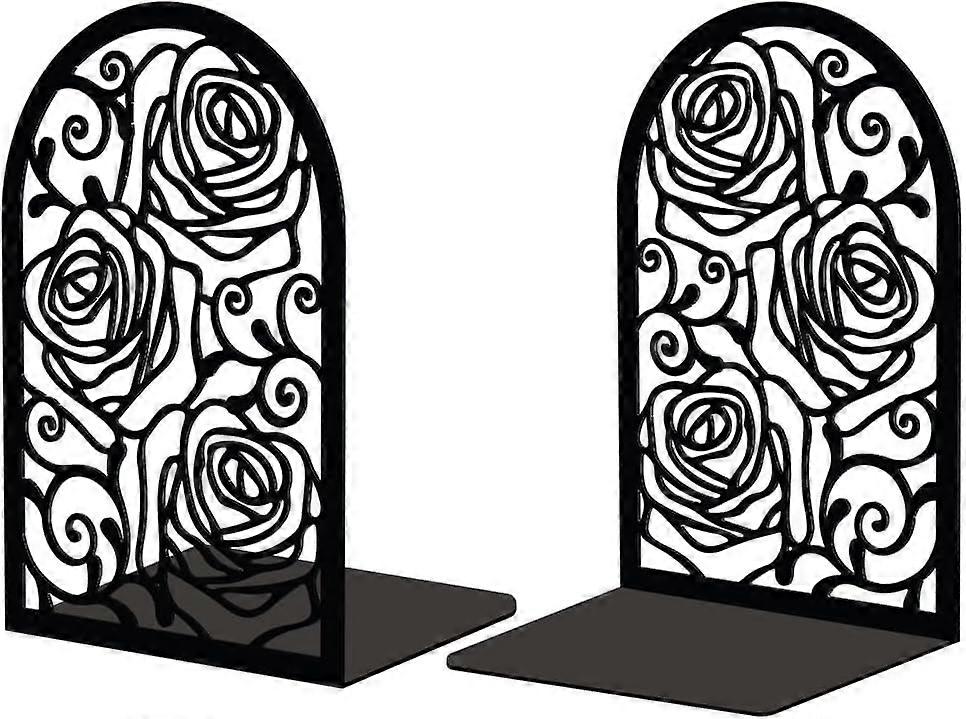 Vintage Rose Metal Bookends, 5.3"x4.3"x7.9", Heavy Duty Decorative Stoppers for Shelves, Desk, Study - 1 Pair (Rose)