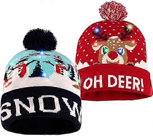 2PCS LED Christmas Hats, LED Light Up Christmas Hat, Light Up Knitted Santa Hat, Light Up Xmas Hat - New Year Party Hats for Kids, Adults, Red, M