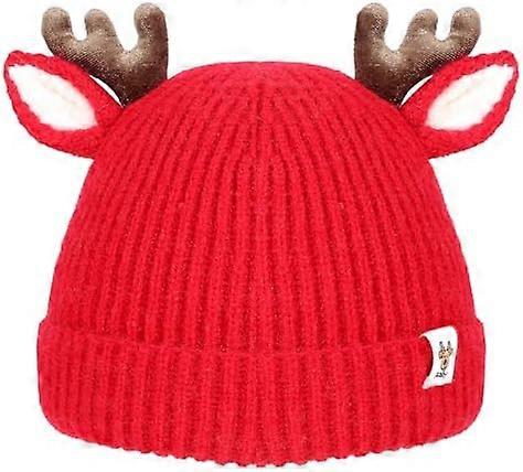 Baby Beanie Soft Warm Boys Winter Hat Cute Antlers Reindeer Lined Girls Accessories Knit Beanies Cap for Toddler Boys Girls Red