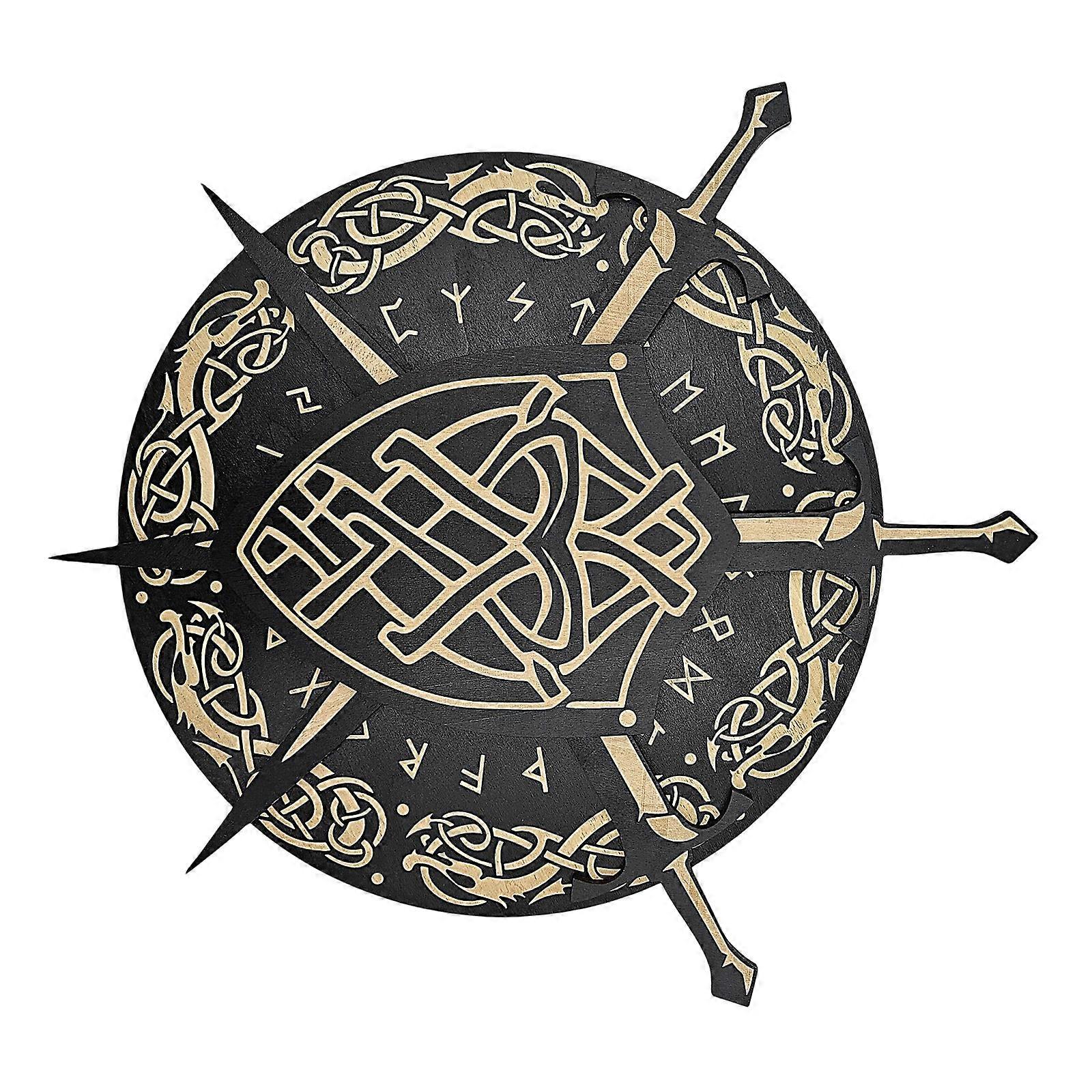 Nordic Medieval Wood Hangings Sign Wall Decors Scandinavians Portrait Sword Wood Plaques for Club Home Decorations Gift Multicolor