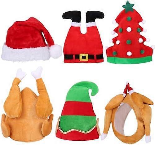 6 PCS Novelty Hats Pack Funny Christmas Hats Holiday Party Photo Props Soft Plush Green Christmas Elf Headwear for Adults Xmas Santa Carnival Party He