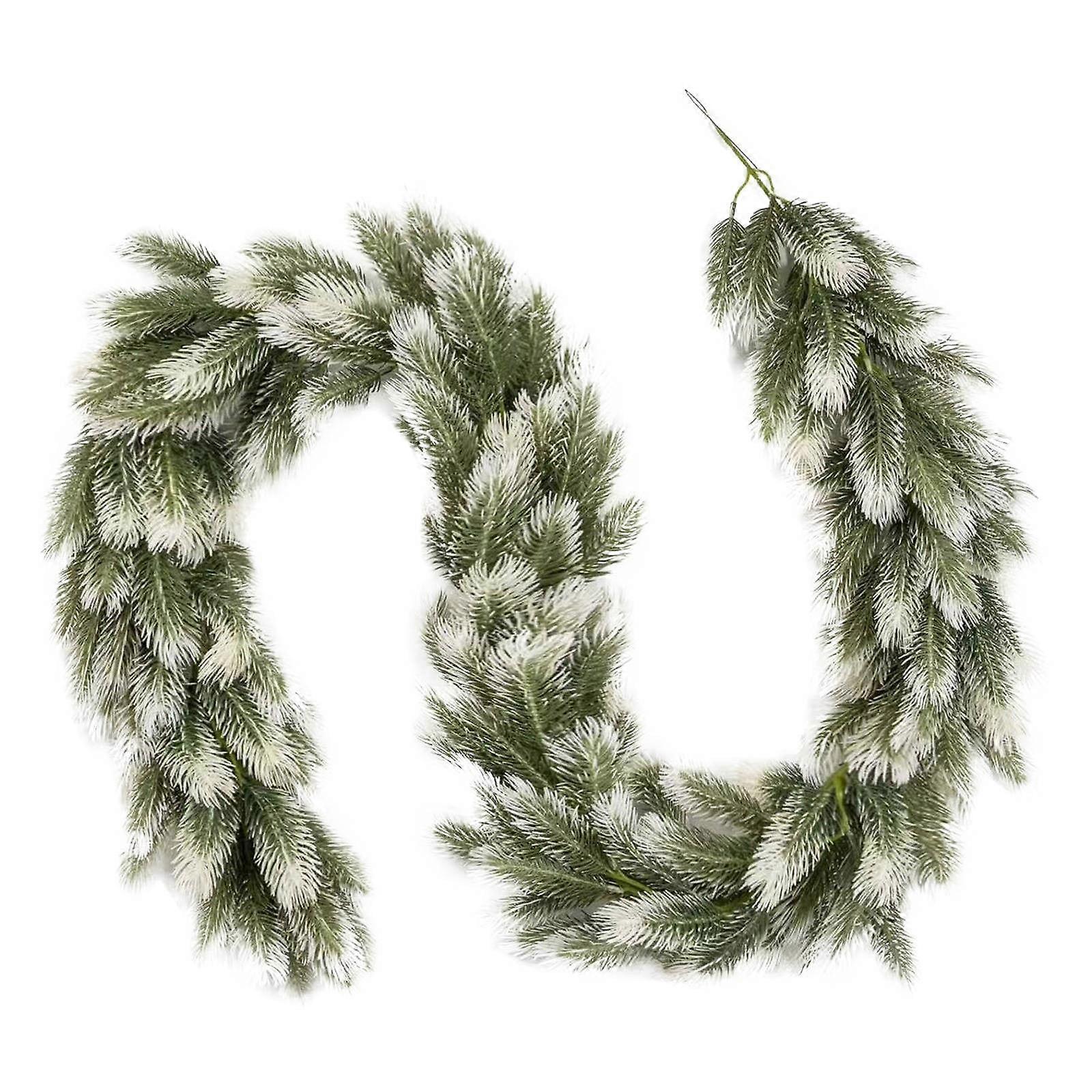 Winysin 6 FT Real Snow Garland with Lights, Compatible with Indoor Outdoor Christmas Decor for Mantle, Staircase, Door, Wall
