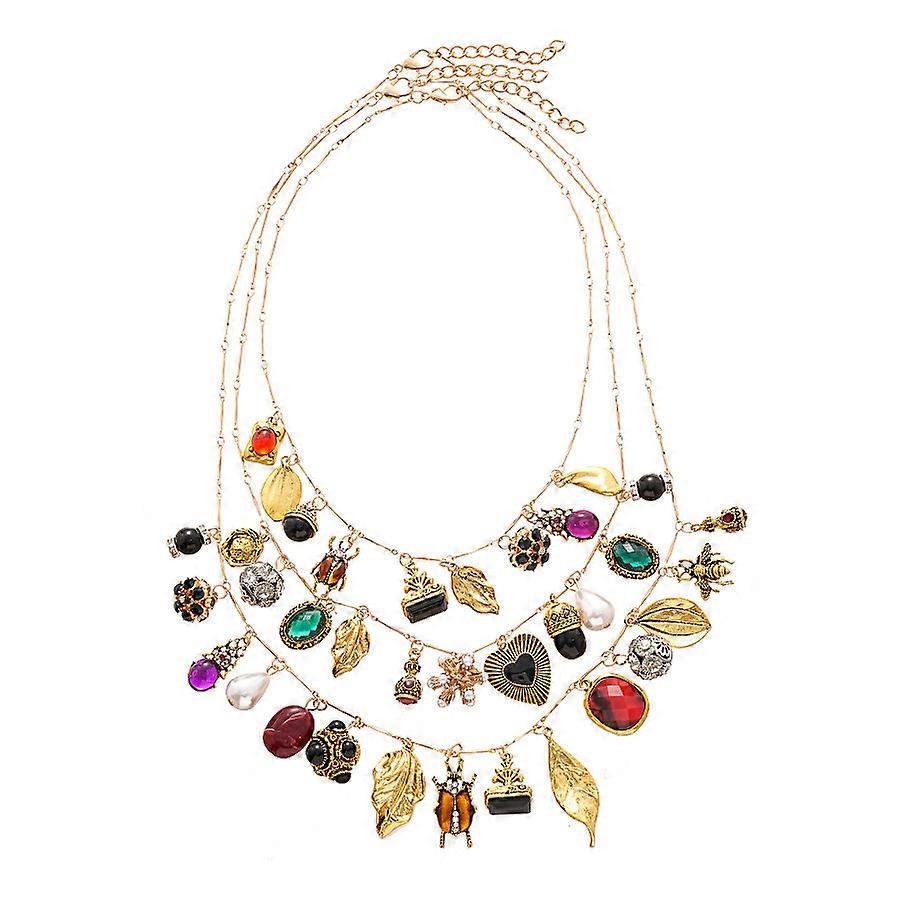 Material: Alloy Processing Technology: Electroplated Length: 51-60cm (including) Color: As shown in the picture A vintage women's necklace featuring diamond-embedded, enamel, heart, leaf, insect, oval geometric and exaggerated multi-element designs, offering a high-end appearance.
