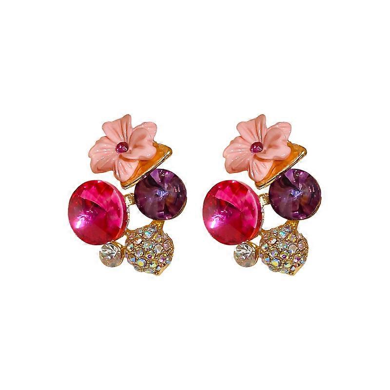Stud Earrings, Vintage Contrast Color Rhinestone Flower Silver for Women
