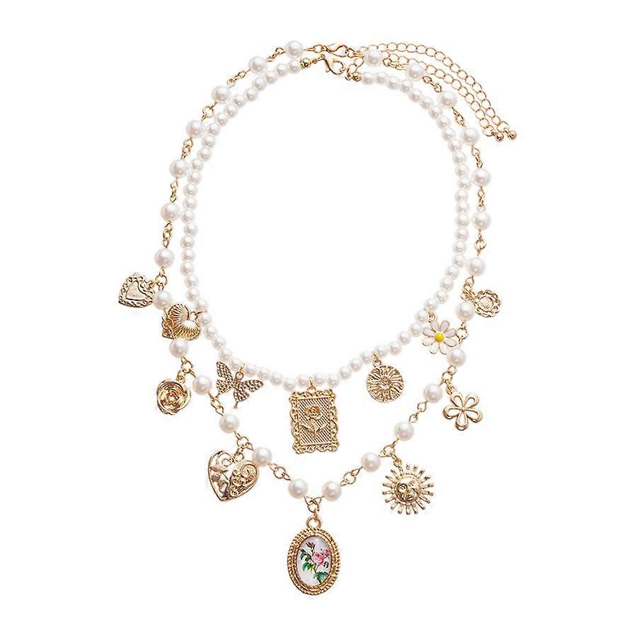 Necklaces, 2pcs Retro Faux Pearl Flower Heart Butterfly Sun Geometric Collarbone French Court Necklace