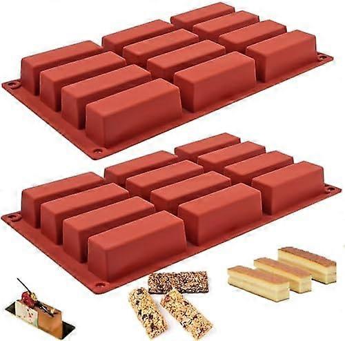 12 Cavity Large Rectangle Silicone Moulds for Baking - Ideal Maker for Granola Bars, Chocolate Truffles, Brownies, Cheesecakes, Puddings - Energy Bar