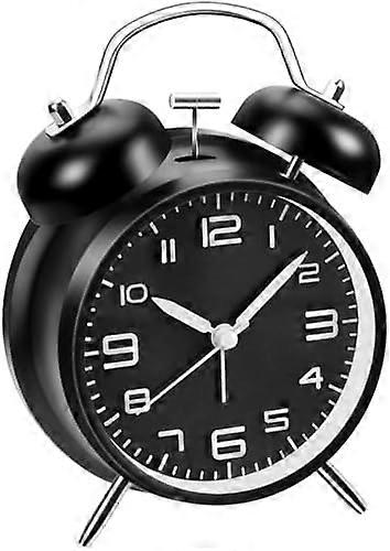 Loud Alarm Clock for Heavy Sleepers Adults, Metal 4 Inches Twin Bell Battery Operated Alarm Clocks for Bedrooms Decoration, Silent Non-Ticking (Black)