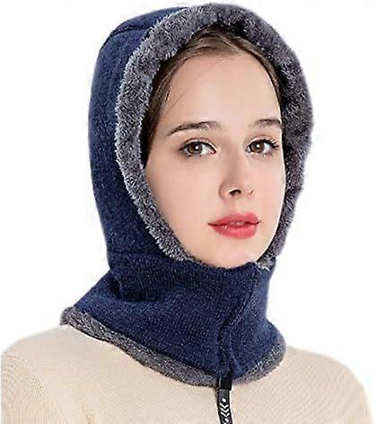 Ladies Elegant Knitted Balaclava Hat Women's Scarf Hat Set with Zip Neck Ear Warmer Thick Windproof Fleece Padded Hood Cycling Skiing Cap Winter Outdo