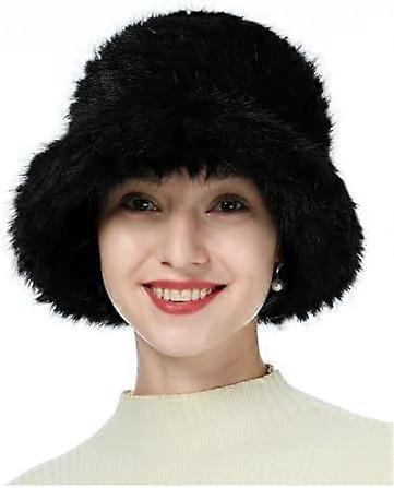 Women's Winter Faux Fur Plush Bucket Hat Cloche Hat Winter Fur Warm Fisherman Cap