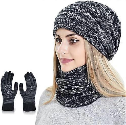 Womens Slouchy Beanie Scarf Gloves Set for Girls Warm Knit Winter Ski Hat with Fleece Lined