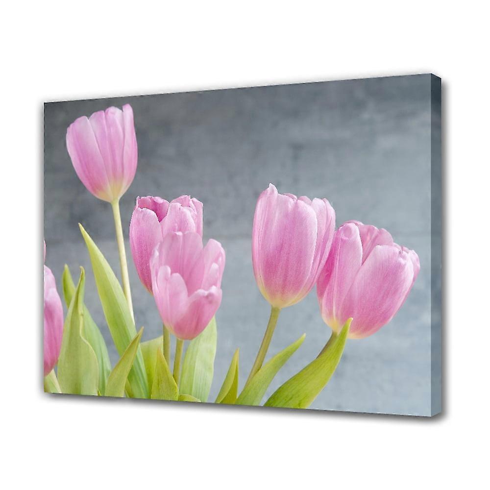 Tulips Flower Blossoms Pink Canvas Poster Bedroom Decor Sports Landscape Office Room Decor Gift,Frame-style,12x18inch(30x45cm)