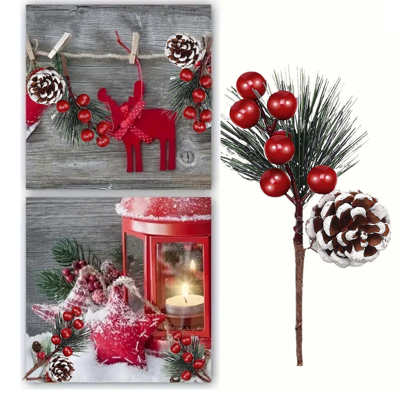 Christmas Fake Pine Branches with Artificial Berries & Pine Cones, Compatible with Xmas Tree Wreath DIY Craft, Holiday Decor
