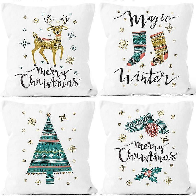 Christmas themed pillowcases, 40x40cm cotton 4 pieces, invisible zipper machine washable and wear resistant
