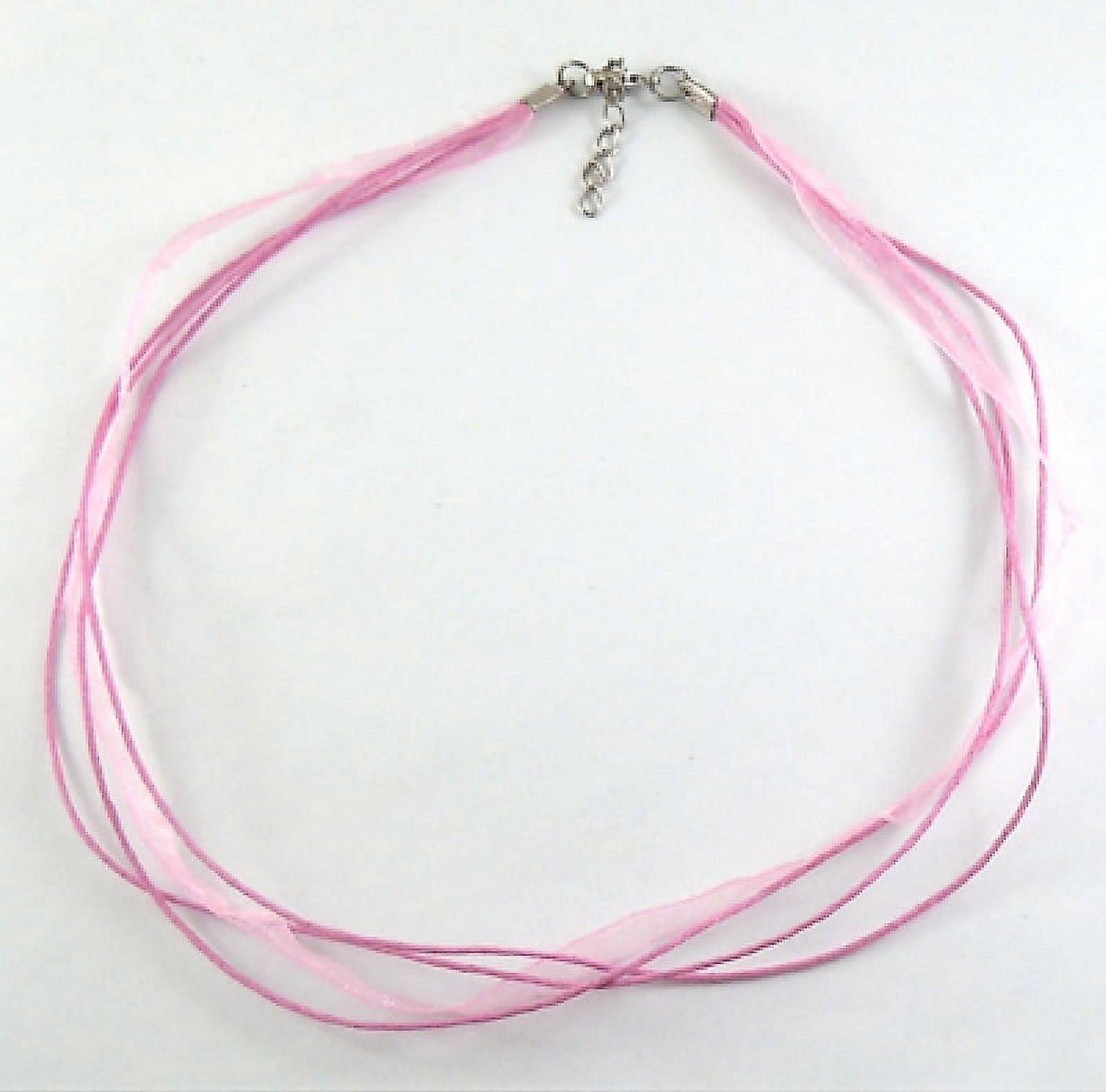 10pc 43cm Necklace Cord Organza Ribbon & Waxed Cotton Cord & Platinum Iron Clasp Pearl Pink