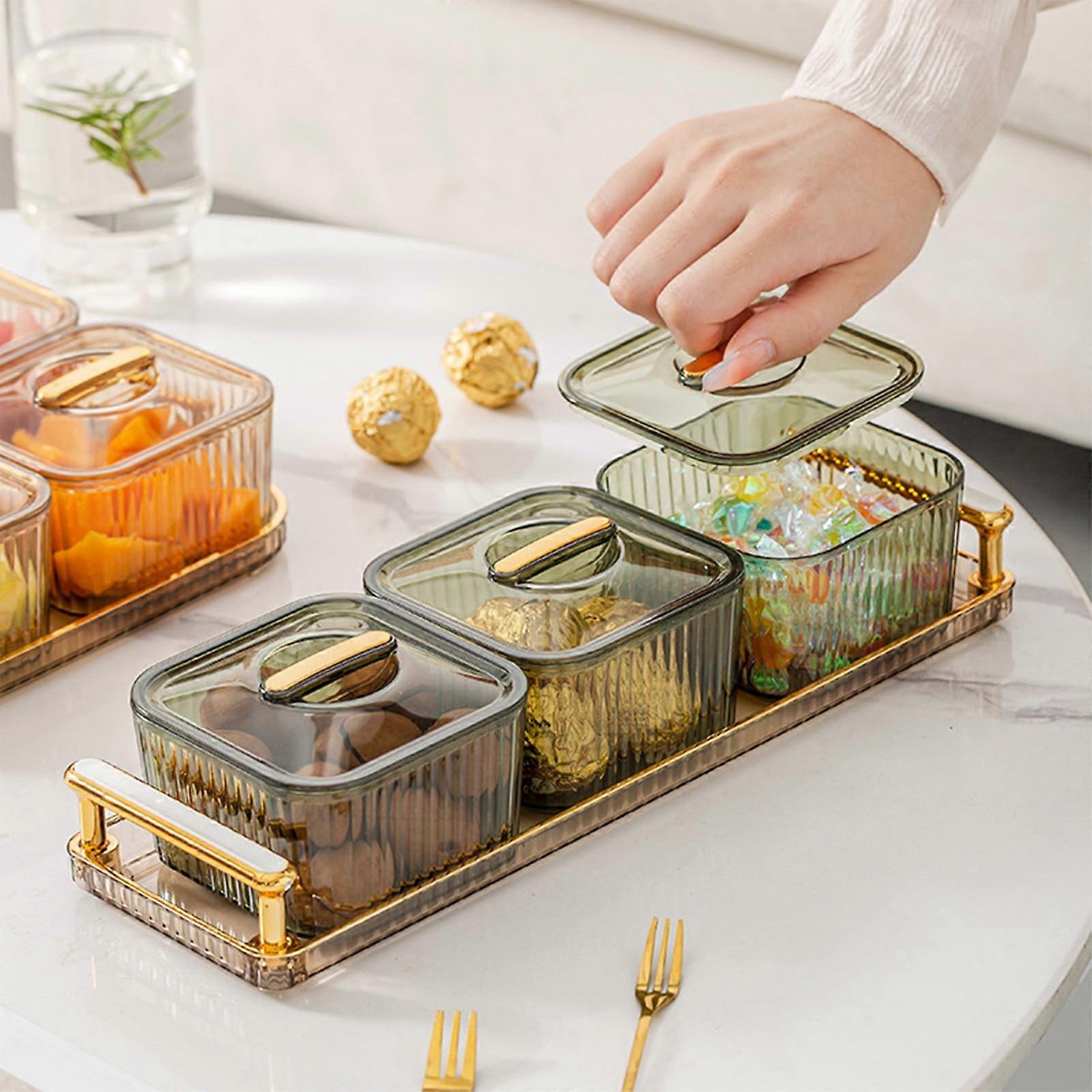 Kiplyki Clear Snack Display Tray, Fruit & Nut Storage Box for Kitchen, Party, Pantry Organization, Compatible with Candy, Dried Fruit