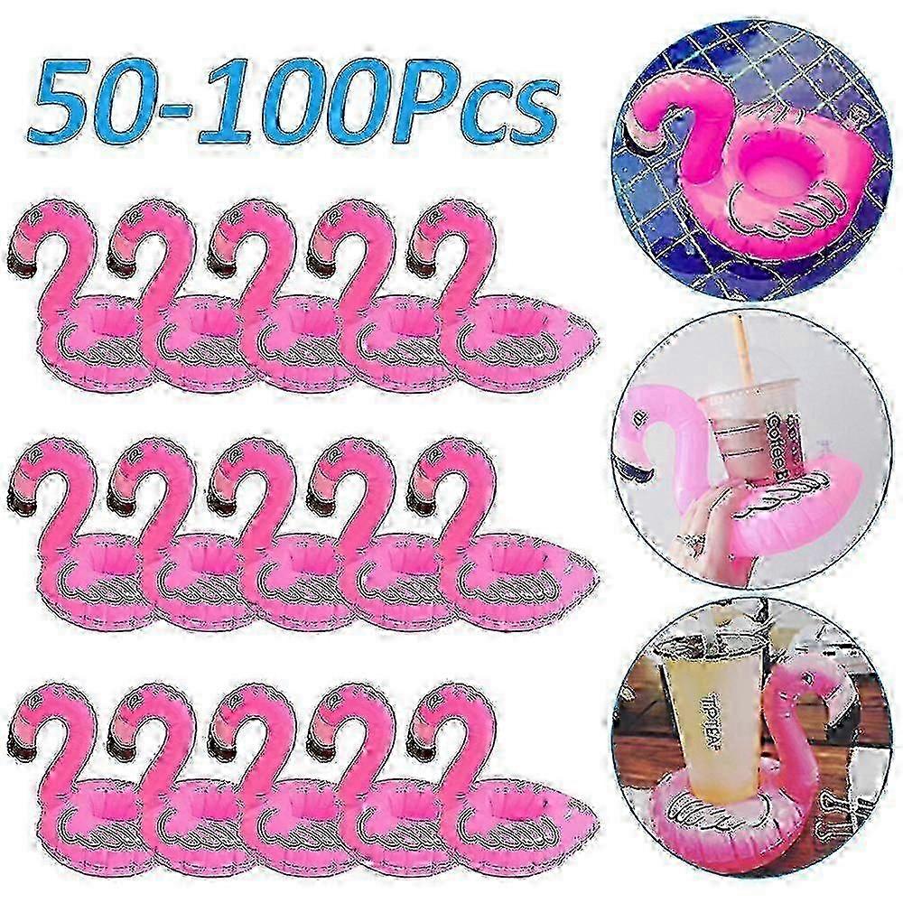 w 50-100pcs Flamingo Cup Holder Swimming Pool Water Float Inflatable Drink Cup For Pool Drinkware Tray Pink Bird Party Decoration