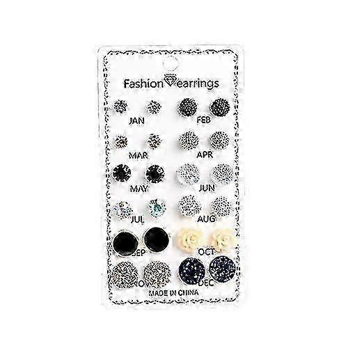 w 12 Pairs/Set Crystal Round Stud Earrings Set for Women Flowers Bow Frosted Ball Piercing Earring Kit Jewelry