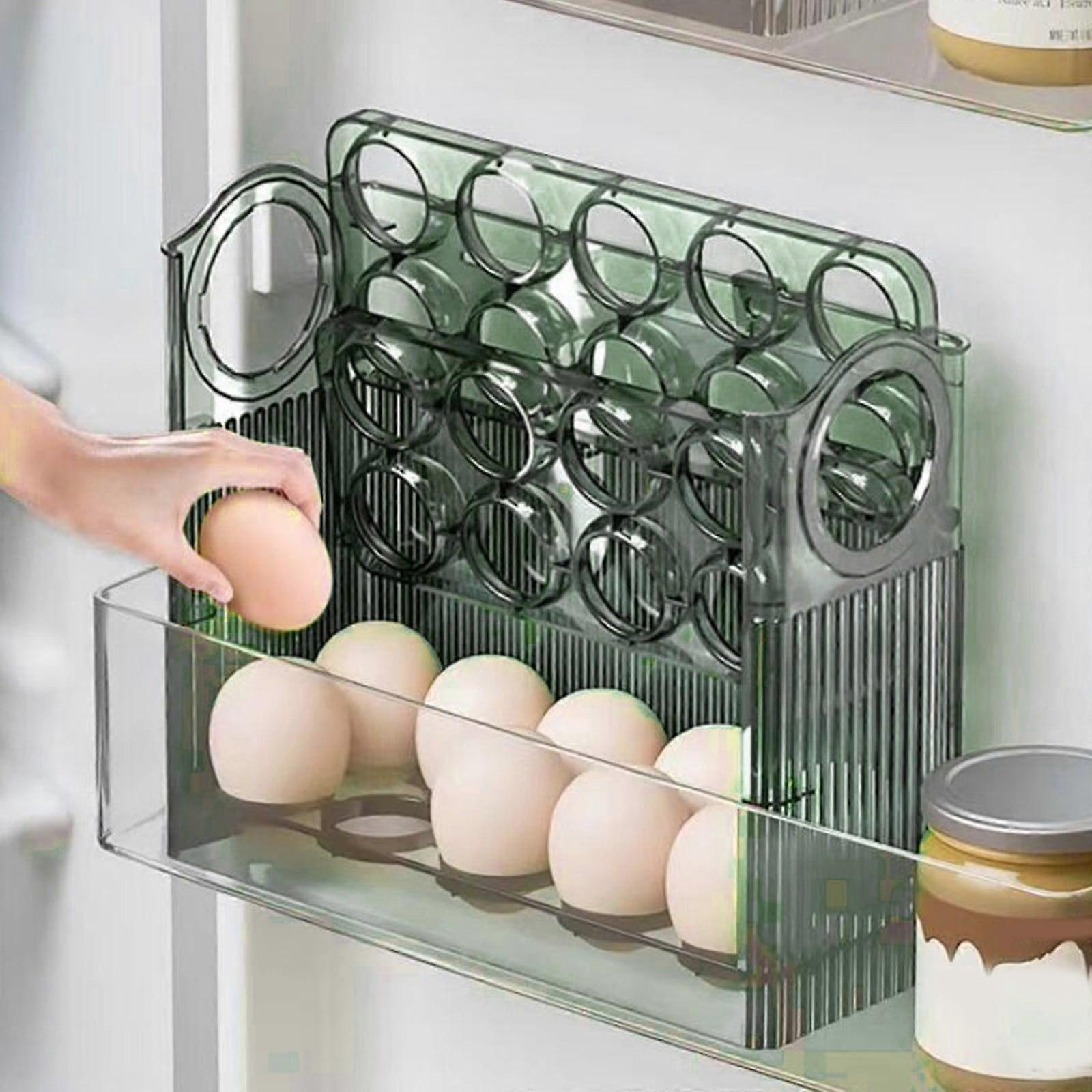 Xubond 3-Layer Flippable Egg Holder, Large Capacity Clear Acrylic Refrigerator Organizer with Side Door, Green - Compatible with 30 Egg Storage
