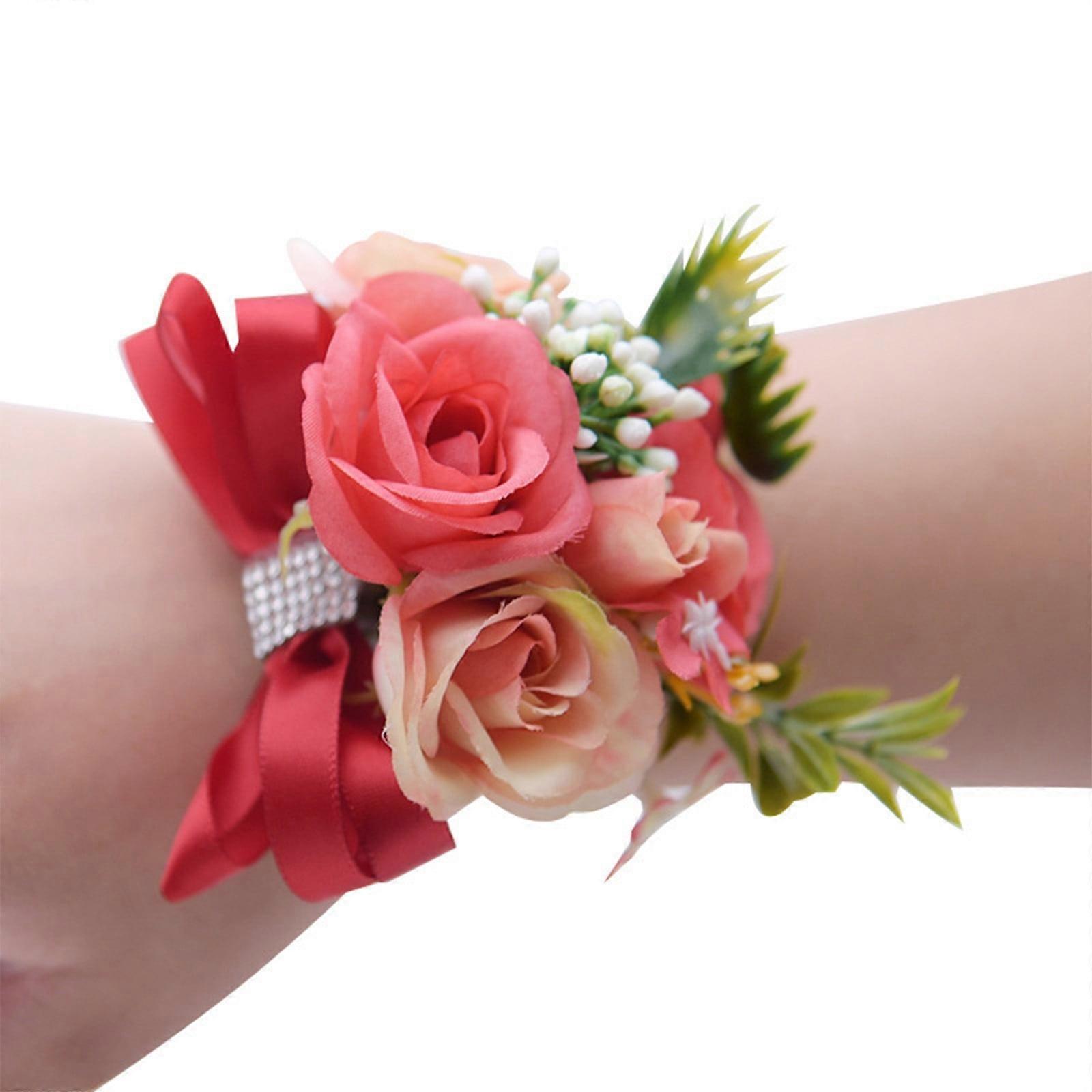 HKUKY Wrist Corsage Bracelet, Prom Wrist Flower, Colorful Rose Decoration, Artificial Flower Wristband for Wedding Anniversary, Prom Party