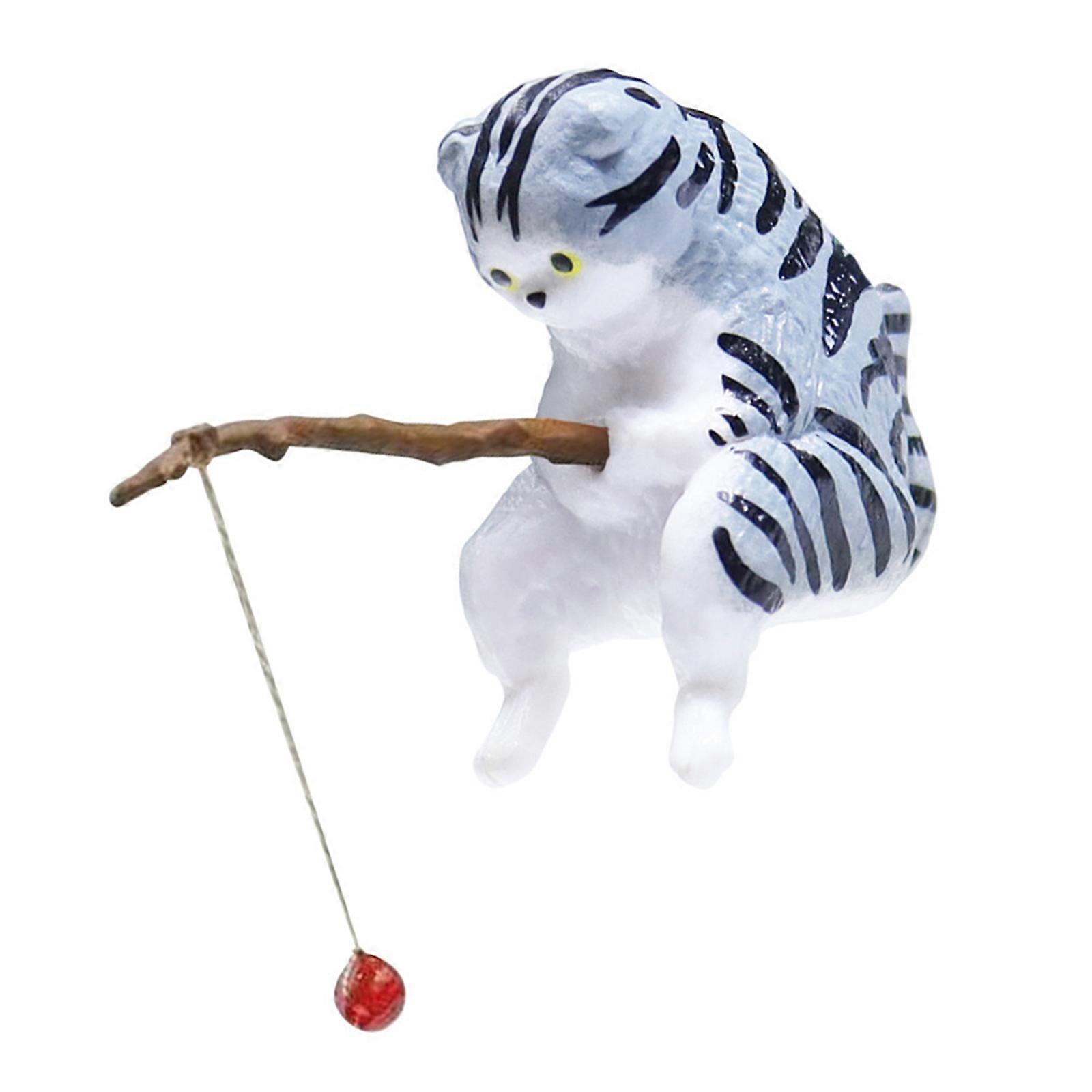 Funny Cats Fishing Sculpture Sunproof Resin Vehicle Ornament Dashboard Decors for Car Enthusiasts Multicolor