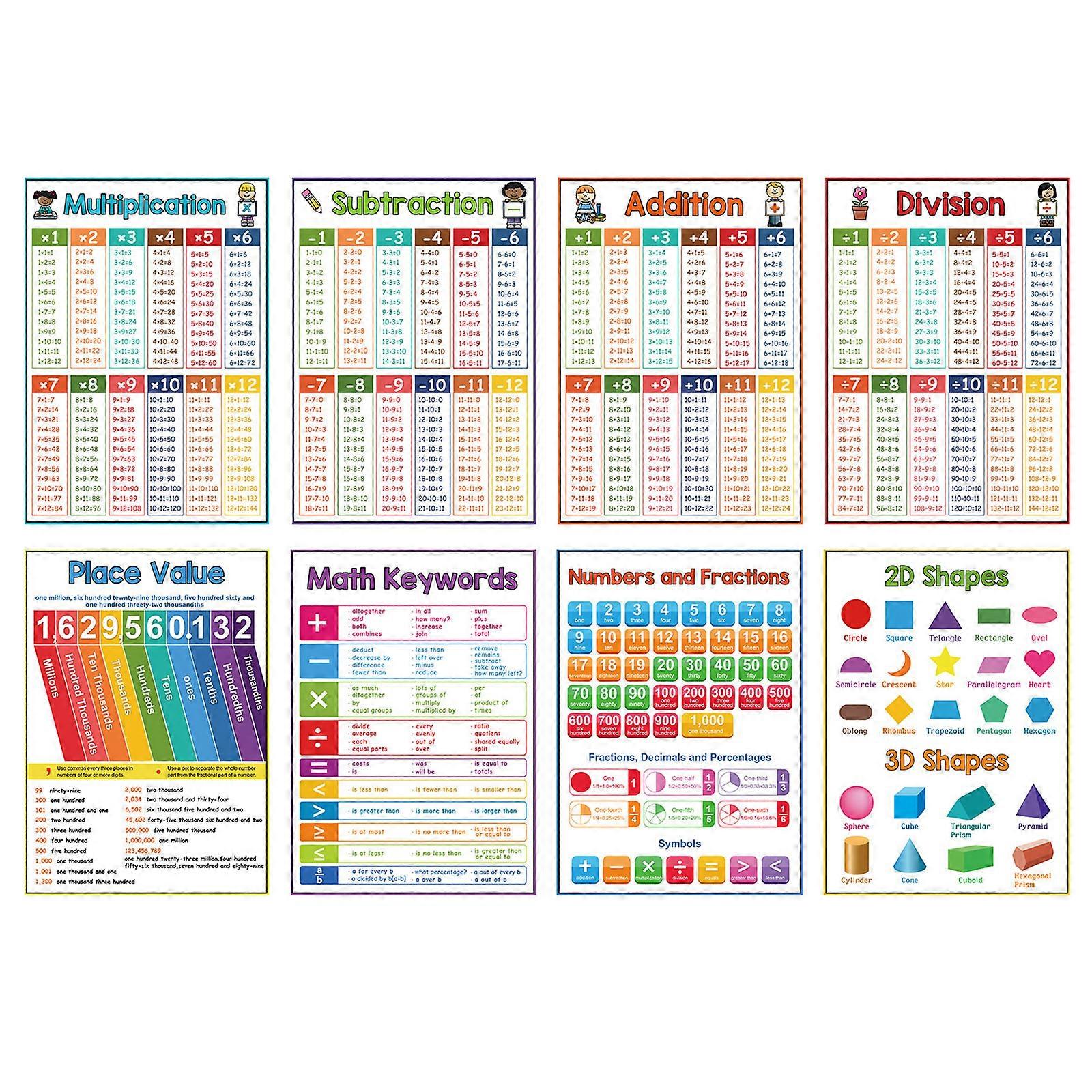 Educational Mathematics Table Wall Mount Paper Mathematics Poster Chart Math Learning Tool For Preschool 8.26x11.22Inch Multicolor