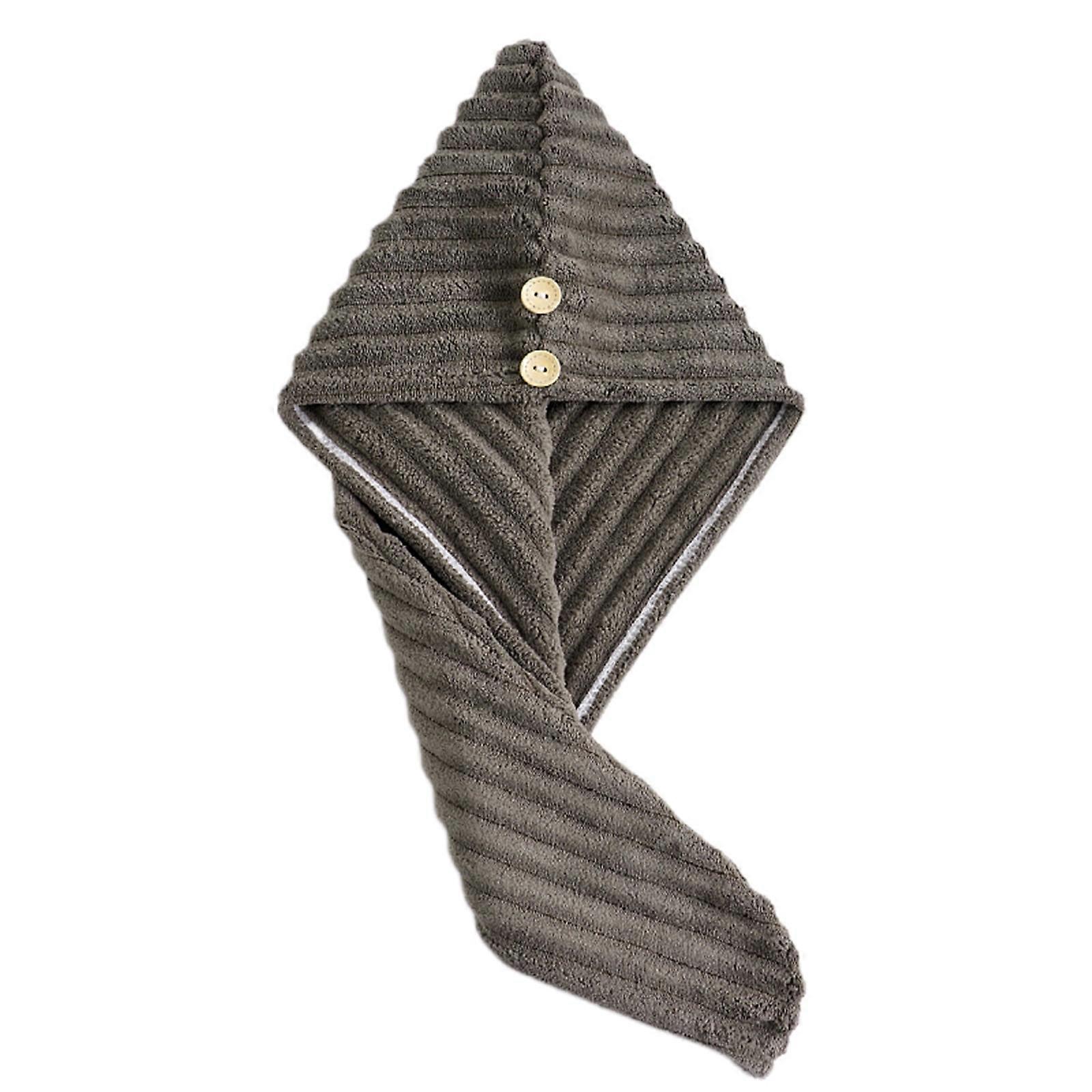 Microfiber Hair Drying Towel Turban for Office & School, Quick-dry Button Style in Reddish Brown, Light Gray, Dark Blue, Beige - Home Gift