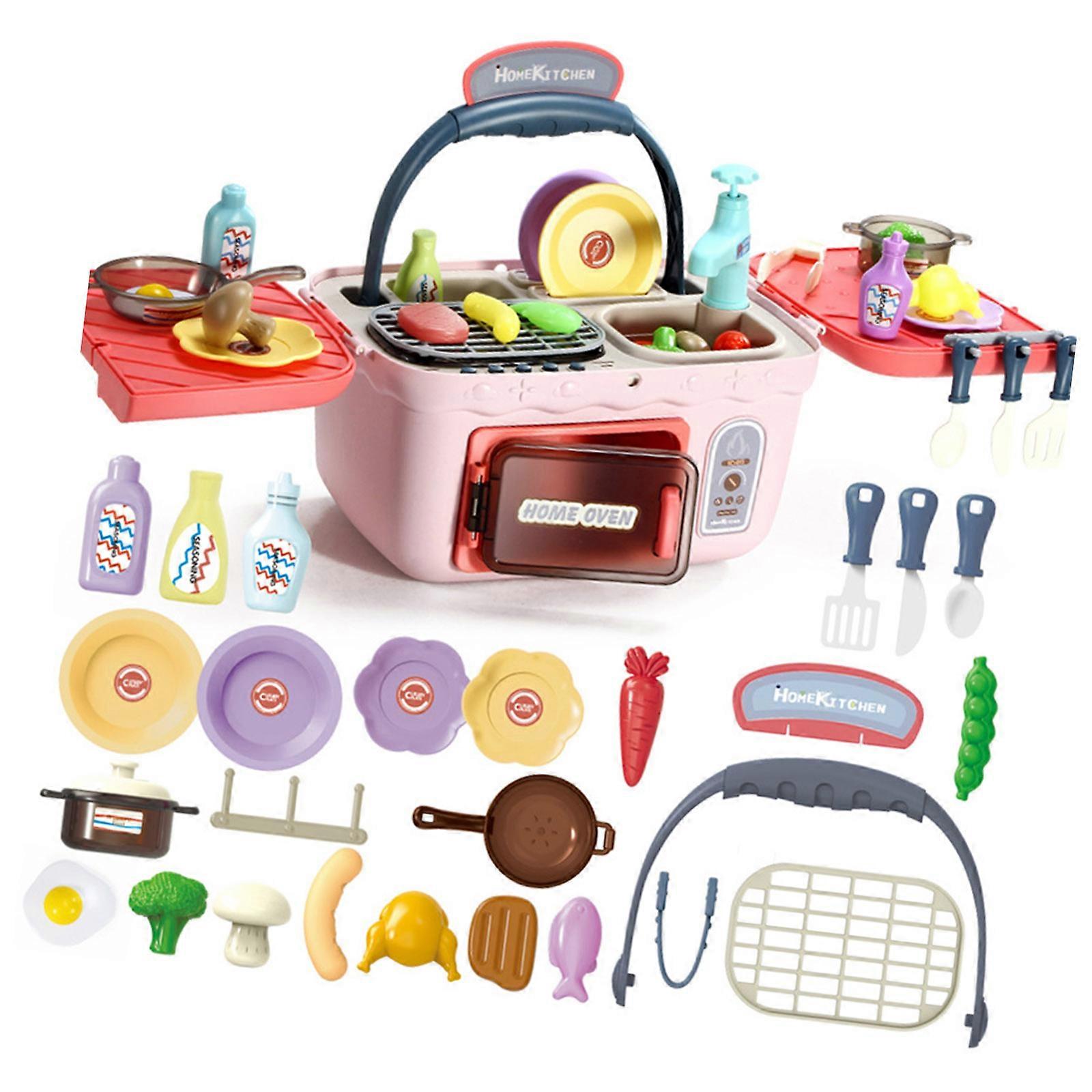 Realistic Plastic Kitchen Toy For Toddlers Ages 3 8 Including Utensils Food Models And Organizational Features Pink